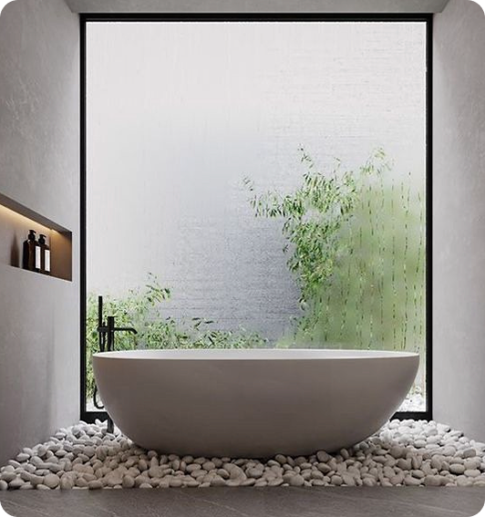 Texturas naturales y paleta neutra para un descanso sereno.